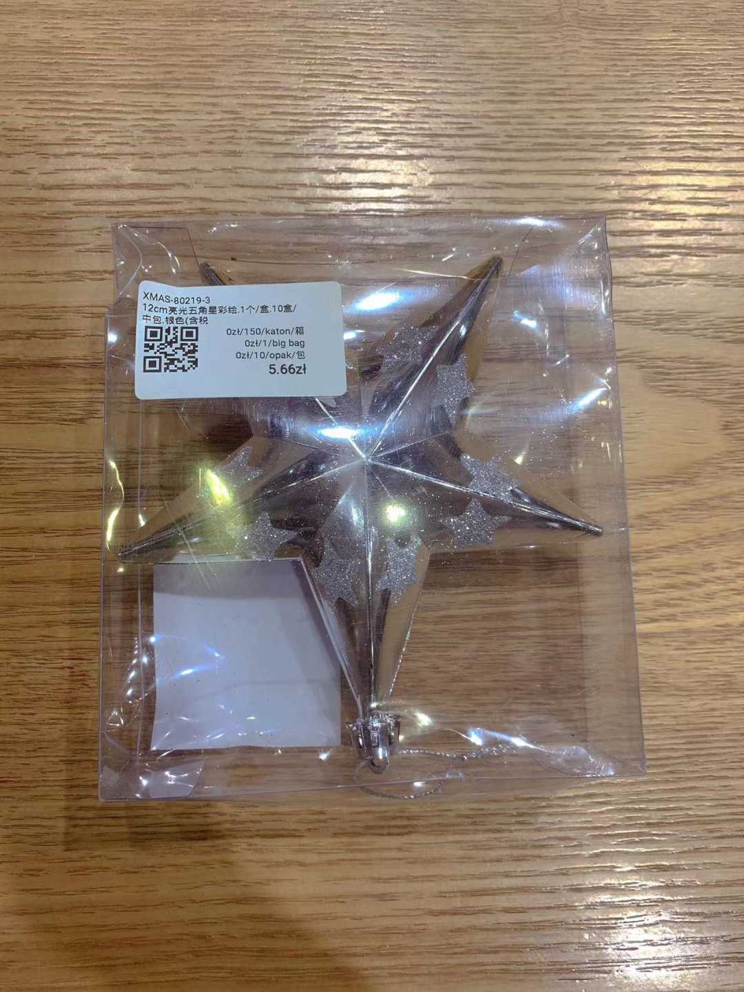 12cm亮光五角星彩绘.1个/盒.10盒/中包.银色(含税 bruto)