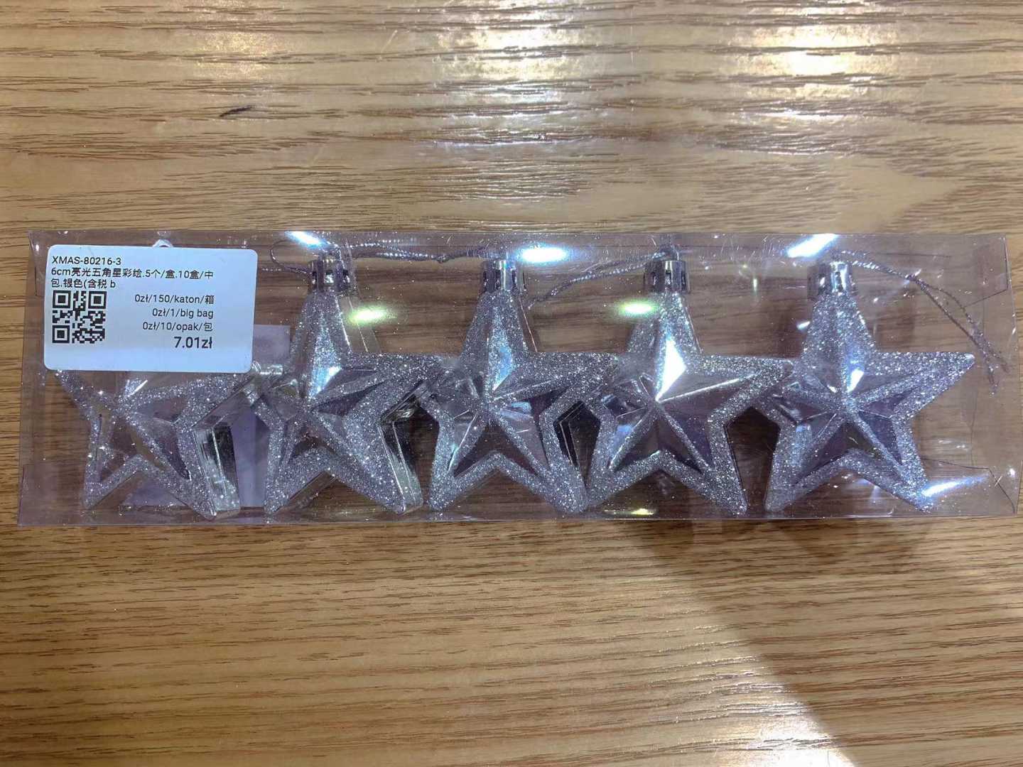6cm亮光五角星彩绘.5个/盒.10盒/中包.银色(含税 bruto)
