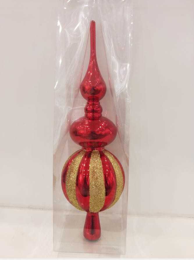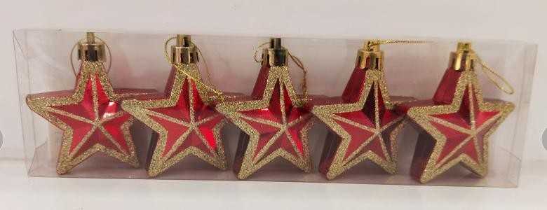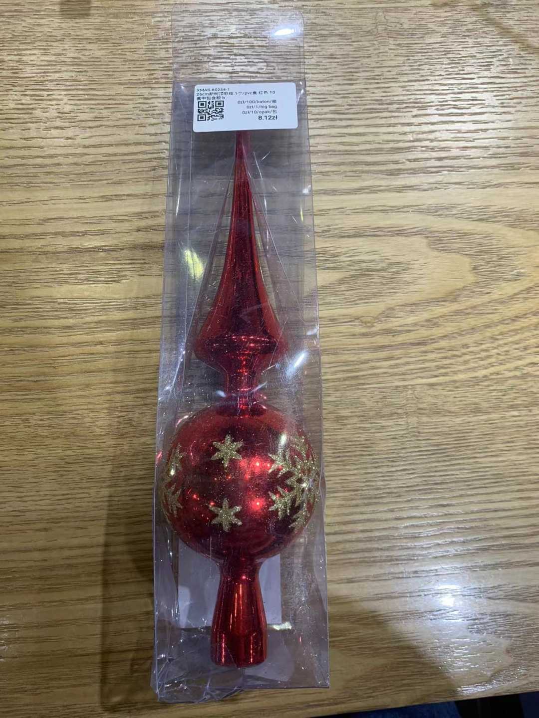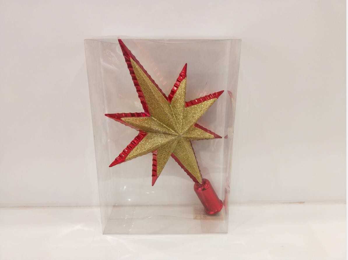 22cm印花五角星树顶.1个/pvc盒.红色10/盒/中包(含税 bruto)