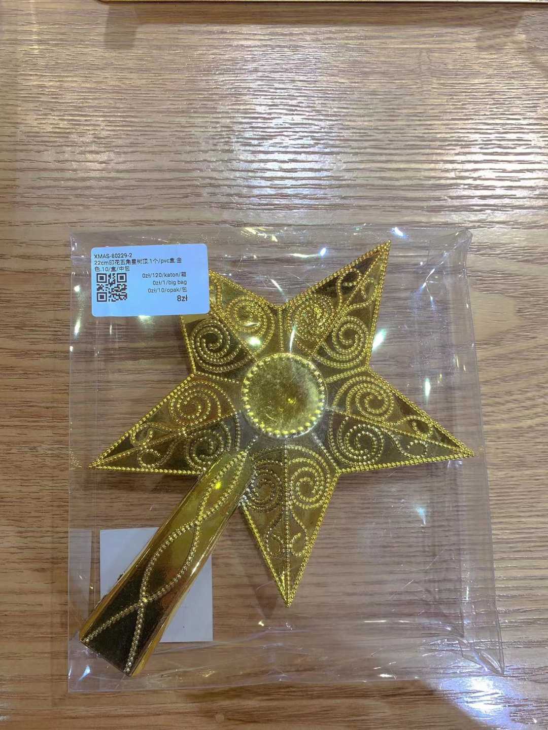 22cm印花五角星树顶.1个/pvc盒.金色.10/盒/中包(含税 bruto)